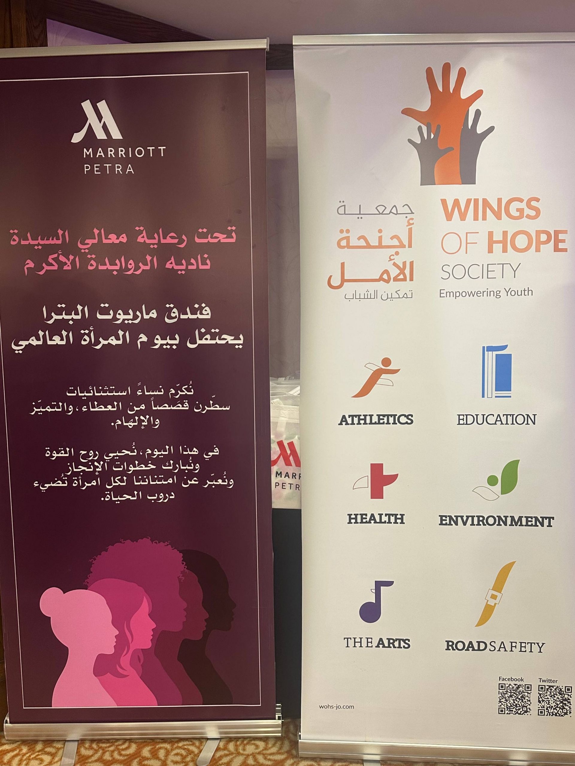 Petra Marriott Hotel and Wings of Hope evening celebrating International Women’s Day under the patronage of Her Excellency Nadia Al Rawabdeh. Thirty three women from the Petra Region were honored and celebrated.